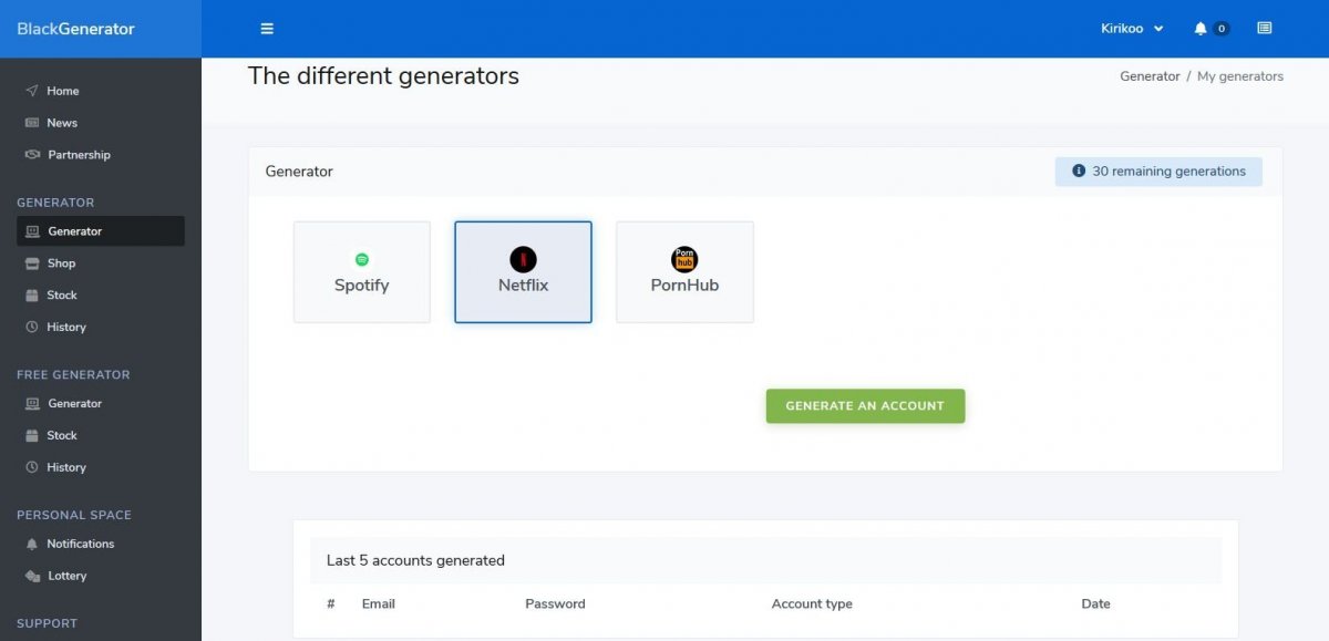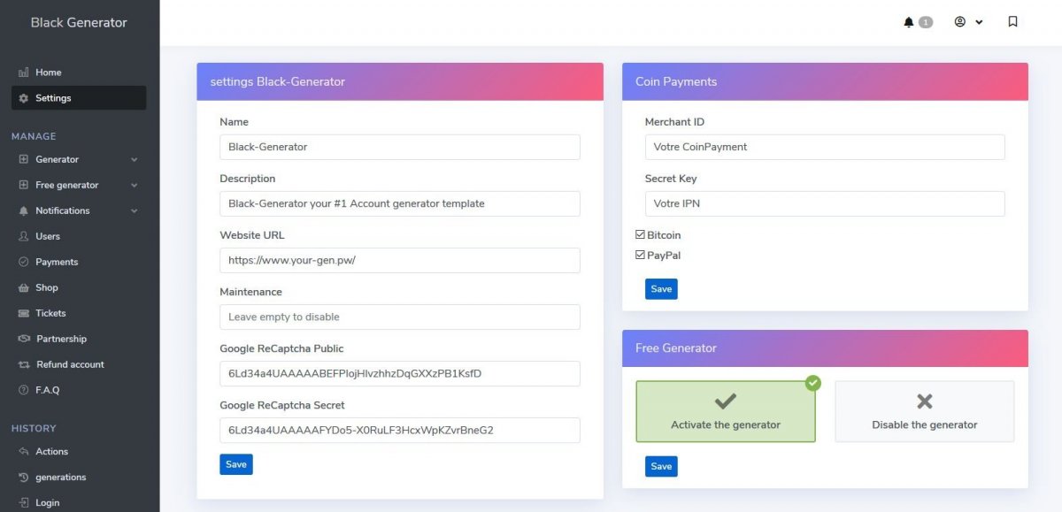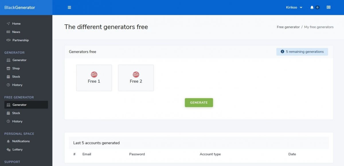 BlackGenerator is a template to create your own account generator without knowledge (minimum required), easily and quickly! it has many features and will meet your customers' expectations